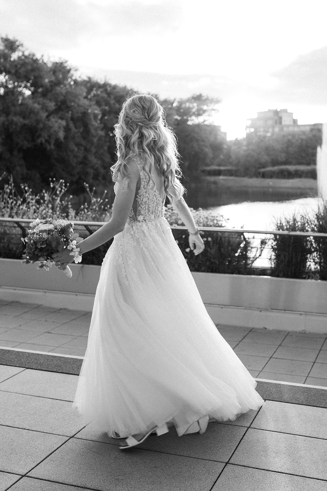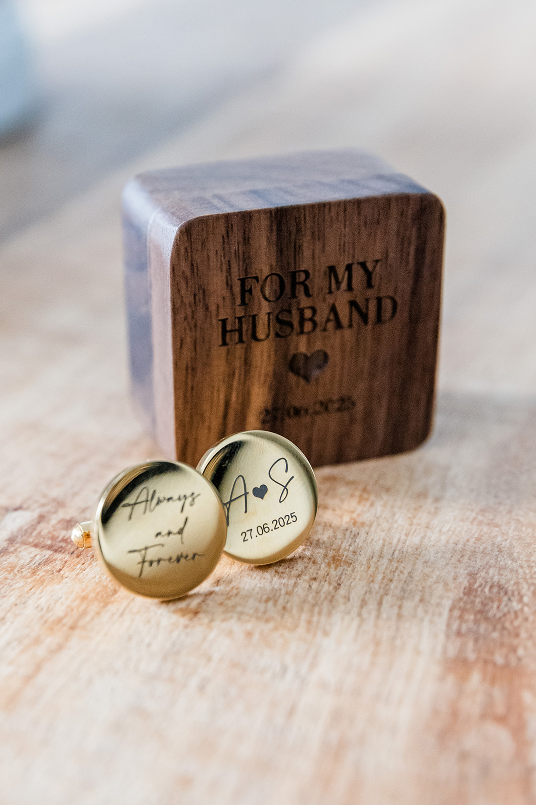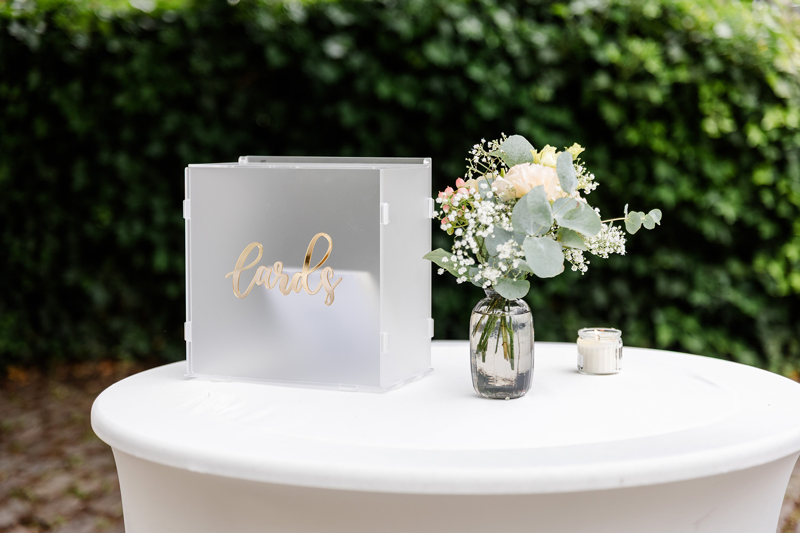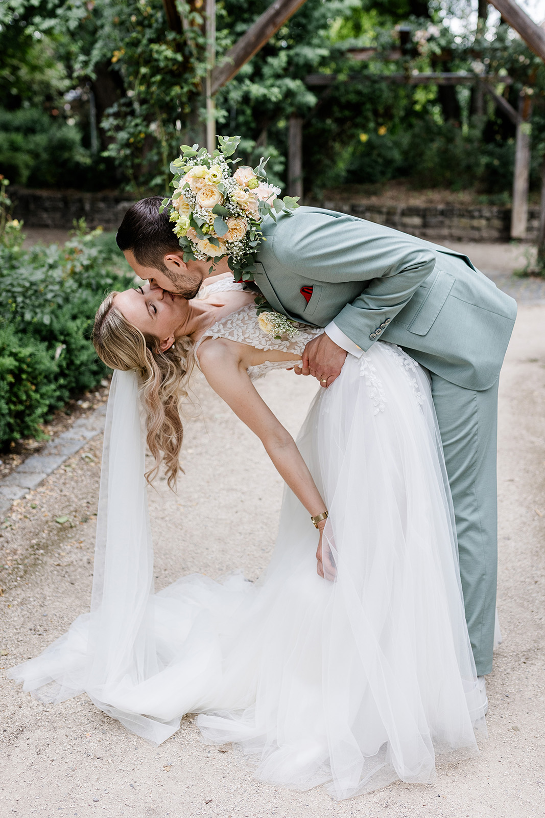 Alles lief auf diesen einen Moment hinaus – ihren First Look. Ganz spontan entstand er im Nachbarsgarten und hätte passender kaum sein können. Gemeinsam ging es anschließend weiter zur standesamtlichen Trauung in Schönaich, wo bereits Familie und Freunde warteten und Alicia von ihrem Vater hereingeführt wurde. Nach einem fröhlichen Auszug wurde gratuliert, angestoßen und gelacht, bevor es zur Feierlocation nach Böblingen weiterging.