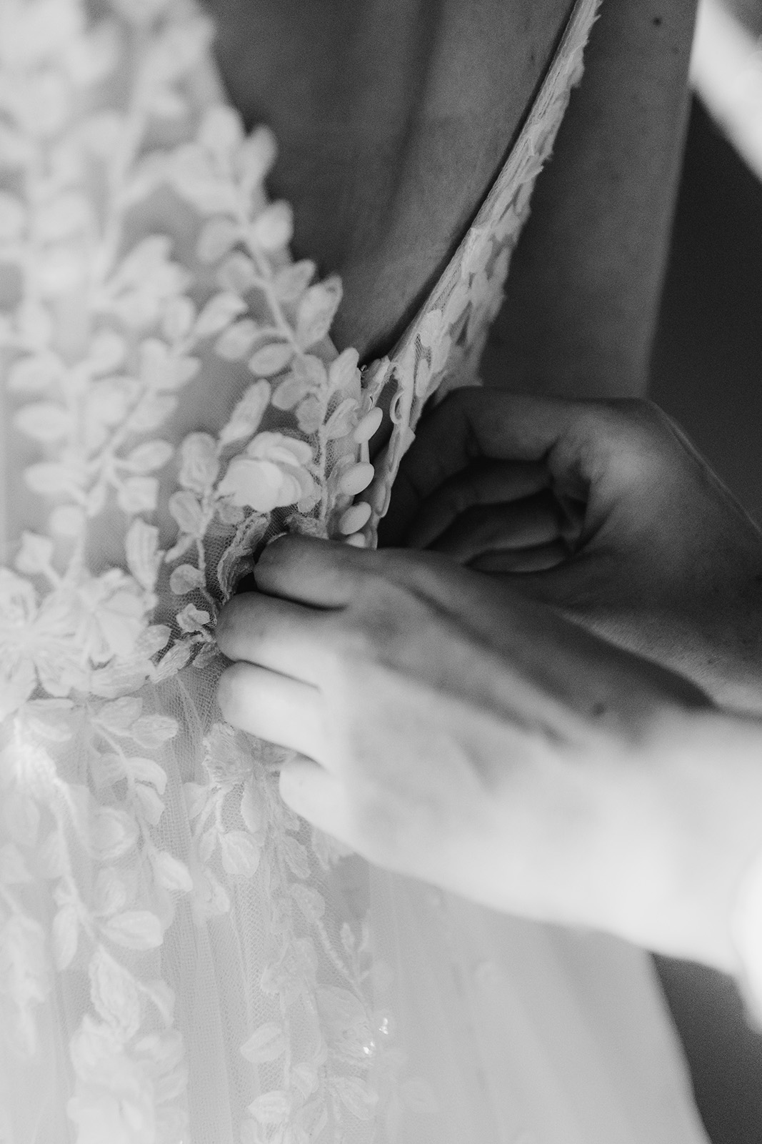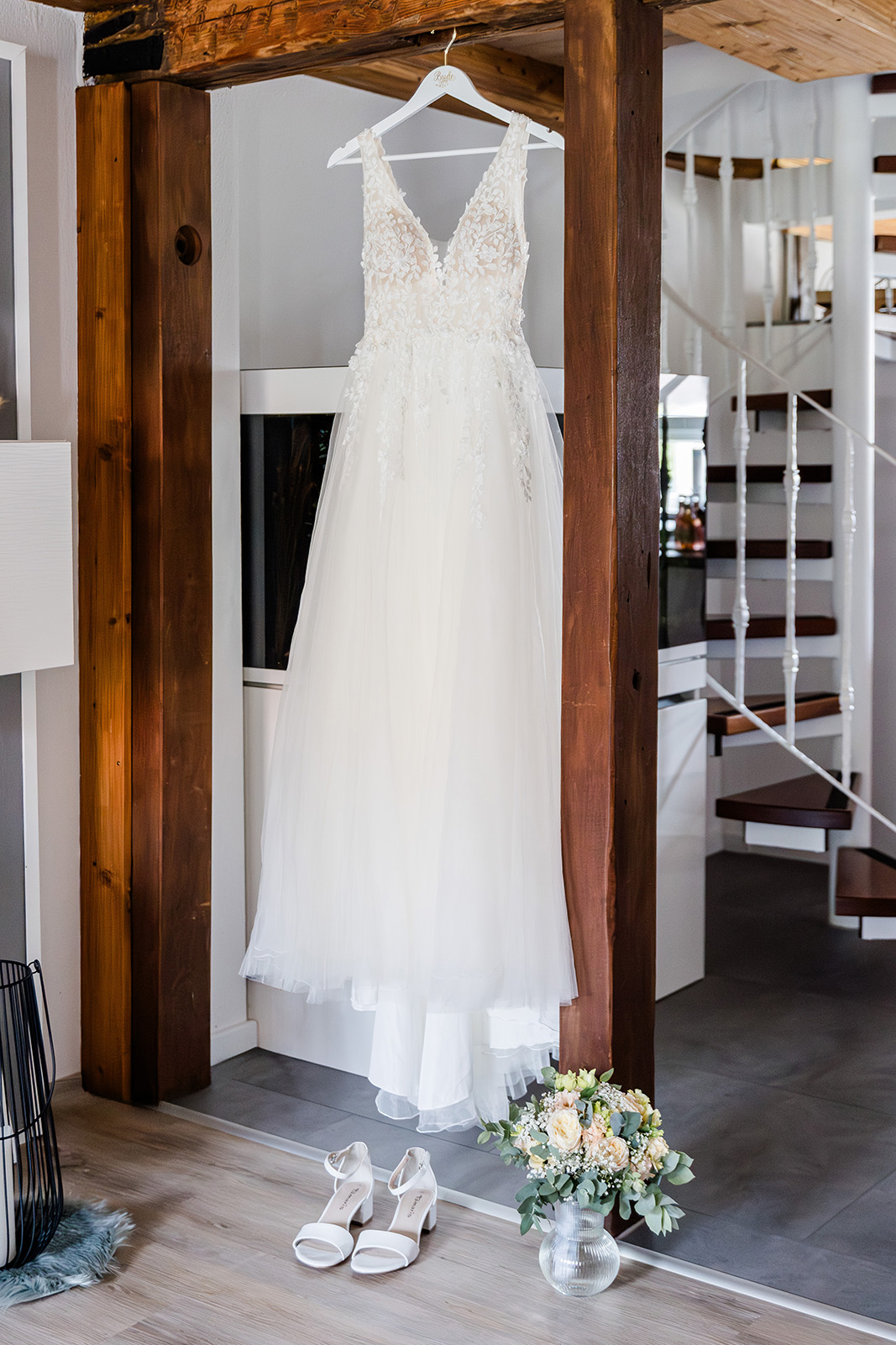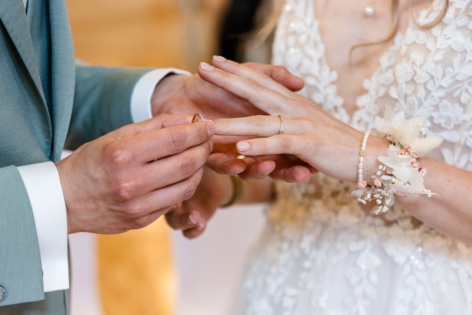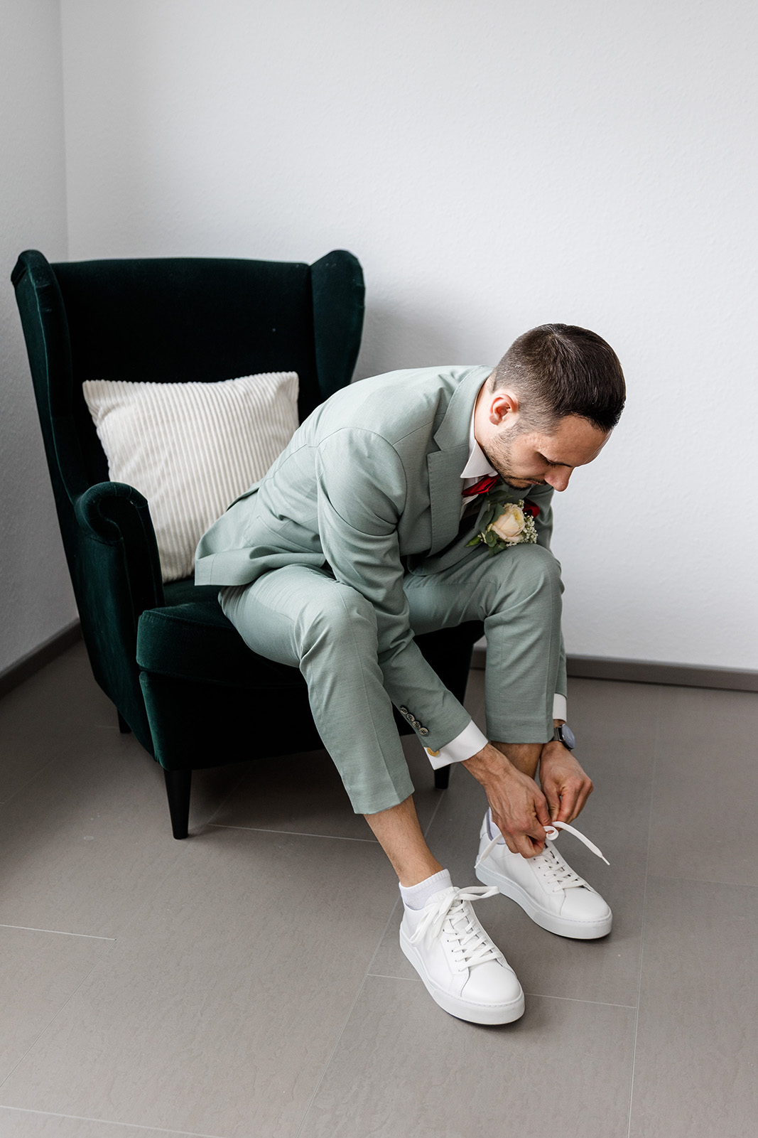 Alicia & Sven durfte ich vom Getting Ready zuhause bis zum Anschnitt ihrer Hochzeitstorte am Abend begleiten. Der Tag begann dabei ganz ruhig: Alicia machte sich gemeinsam mit ihrer Trauzeugin und Mama fertig, während Sven sich nur wenige Häuser weiter mit seinem Trauzeugen vorbereitete.