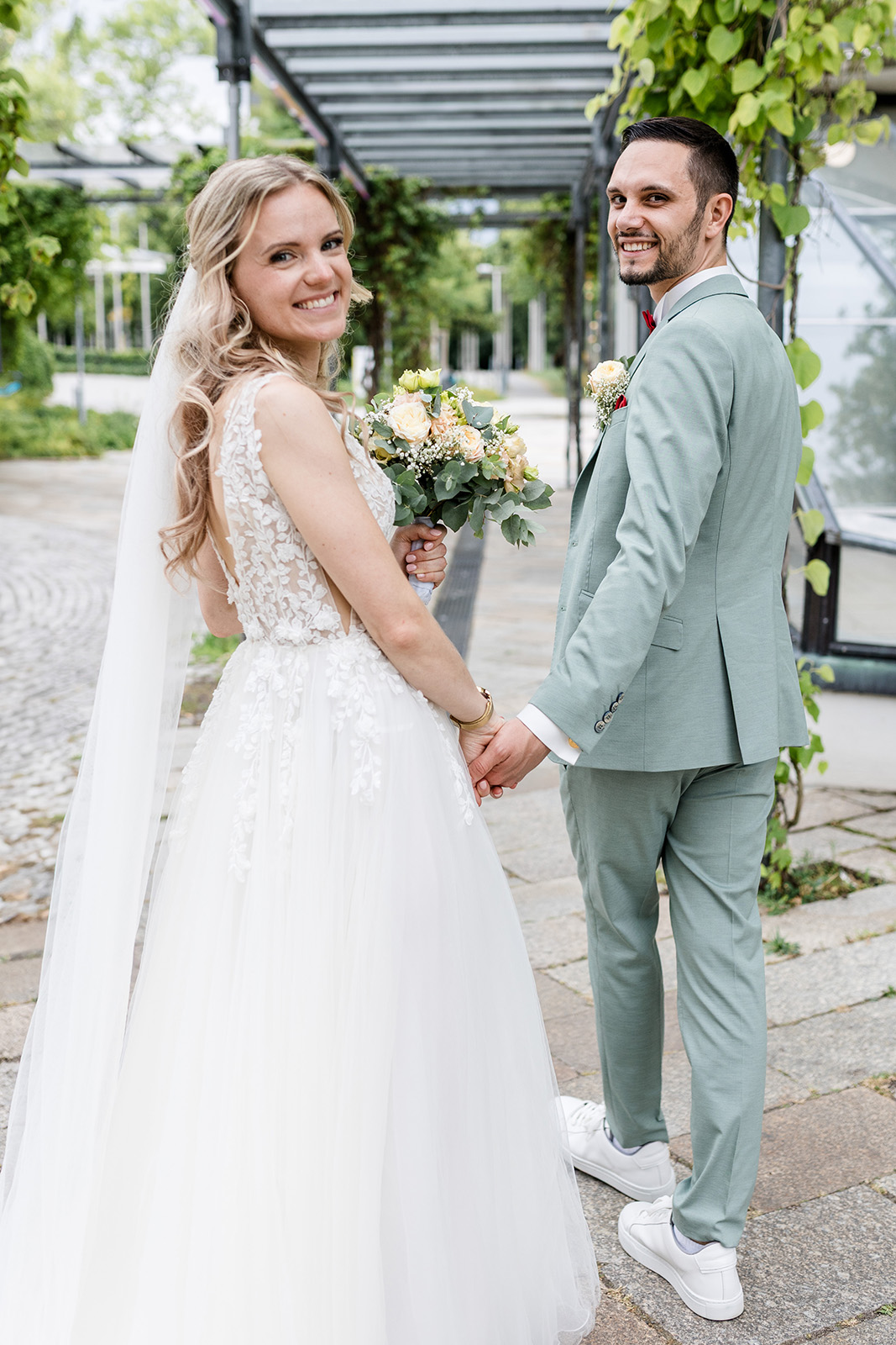 Im Stadtpark nutzten wir die Zeit für ein zweites Paarshooting, während ich über den Tag hinweg viele Begegnungen, Gruppenbilder und liebevolle Details festhielt.