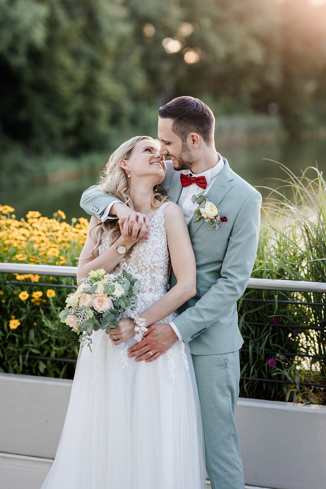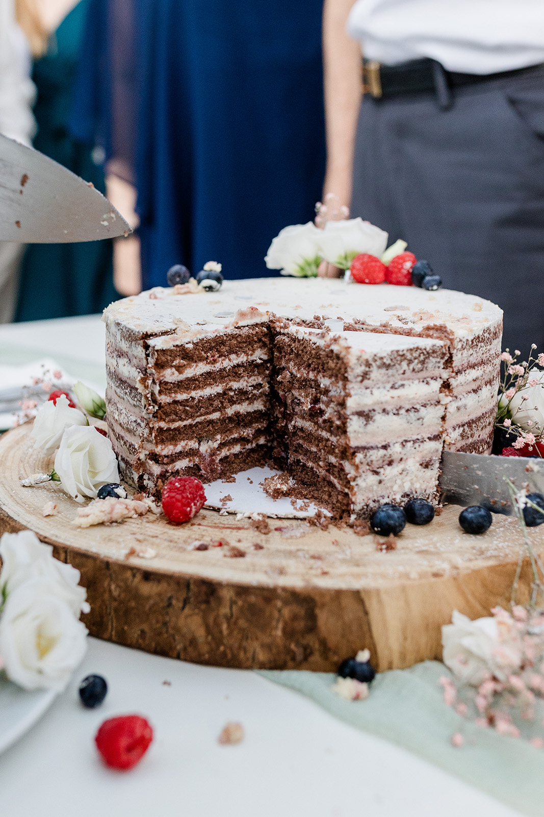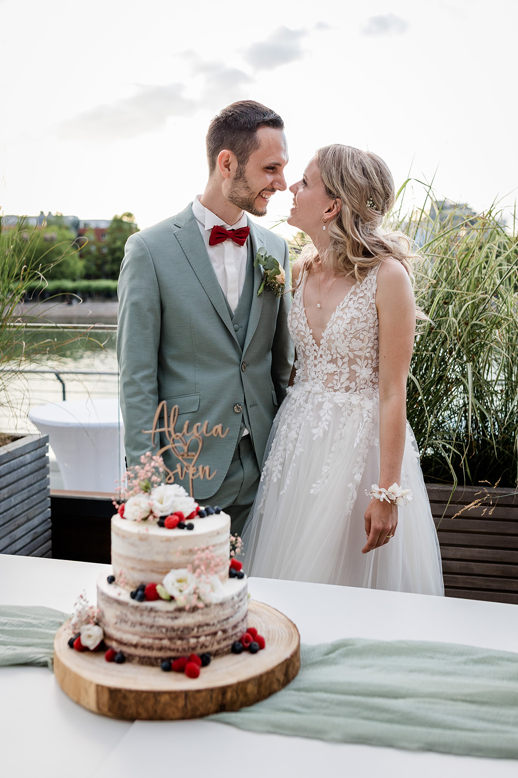 Kurz vor dem Dessert schlichen wir uns noch einmal für ein kurzes Sonnenuntergangsshooting davon – direkt an der Location. Diese ruhigen Minuten lohnten sich sehr, bevor beim Tortenanschnitt der Abend langsam ausklang.