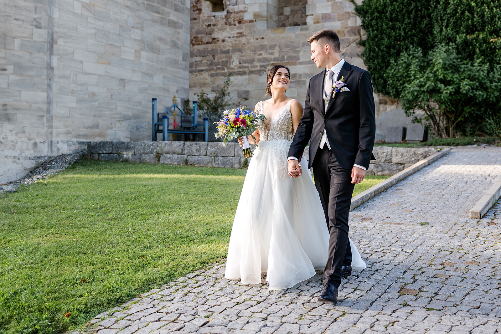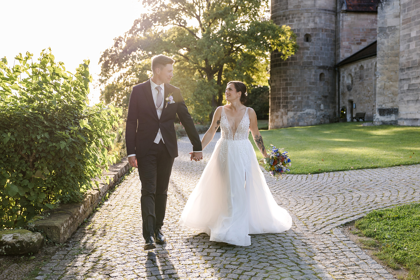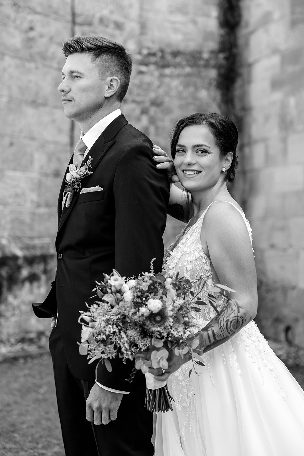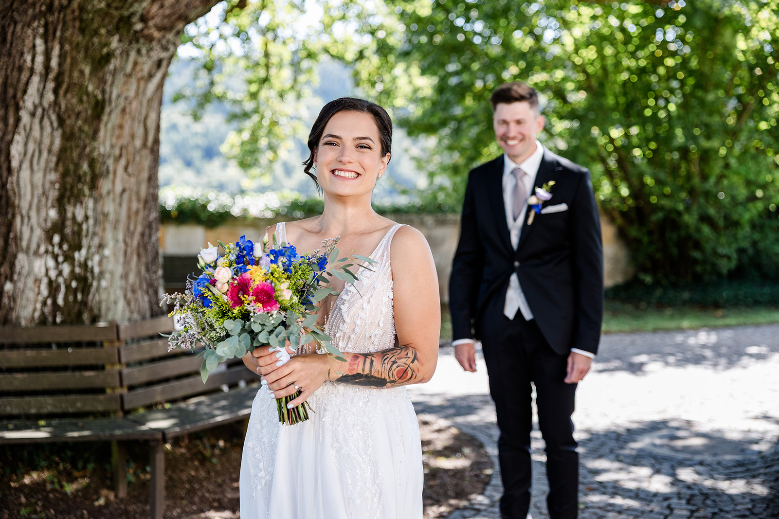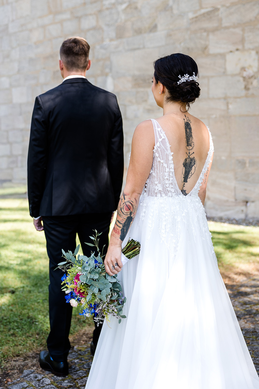 Leonie und Andre haben mich an ihrem besonderen Tag im Kloster Lorch von Anfang an mitgenommen – ein Ort voller Geschichte, Ruhe und einer besonderen Stimmung. Wir starteten mit ihrem First Look, dem ersten aufeinander Treffen des Tages. Es lag eine kleine Aufregung und ganz viel Vorfreude in der Luft.