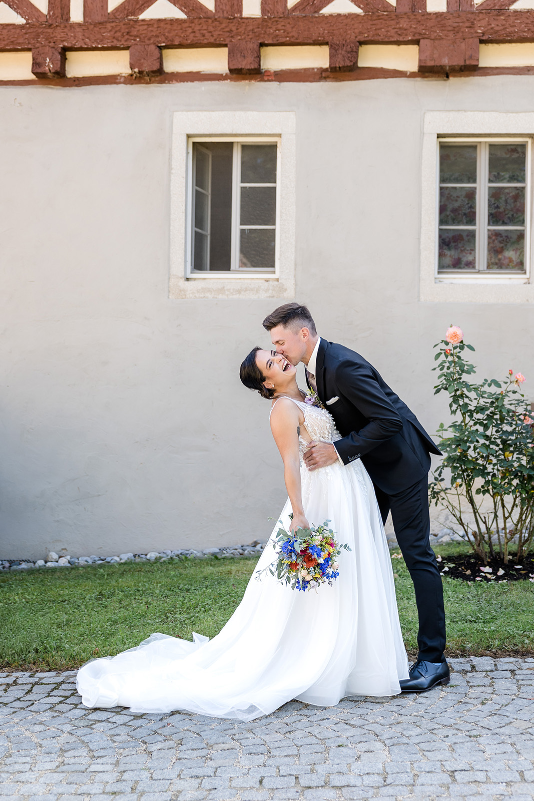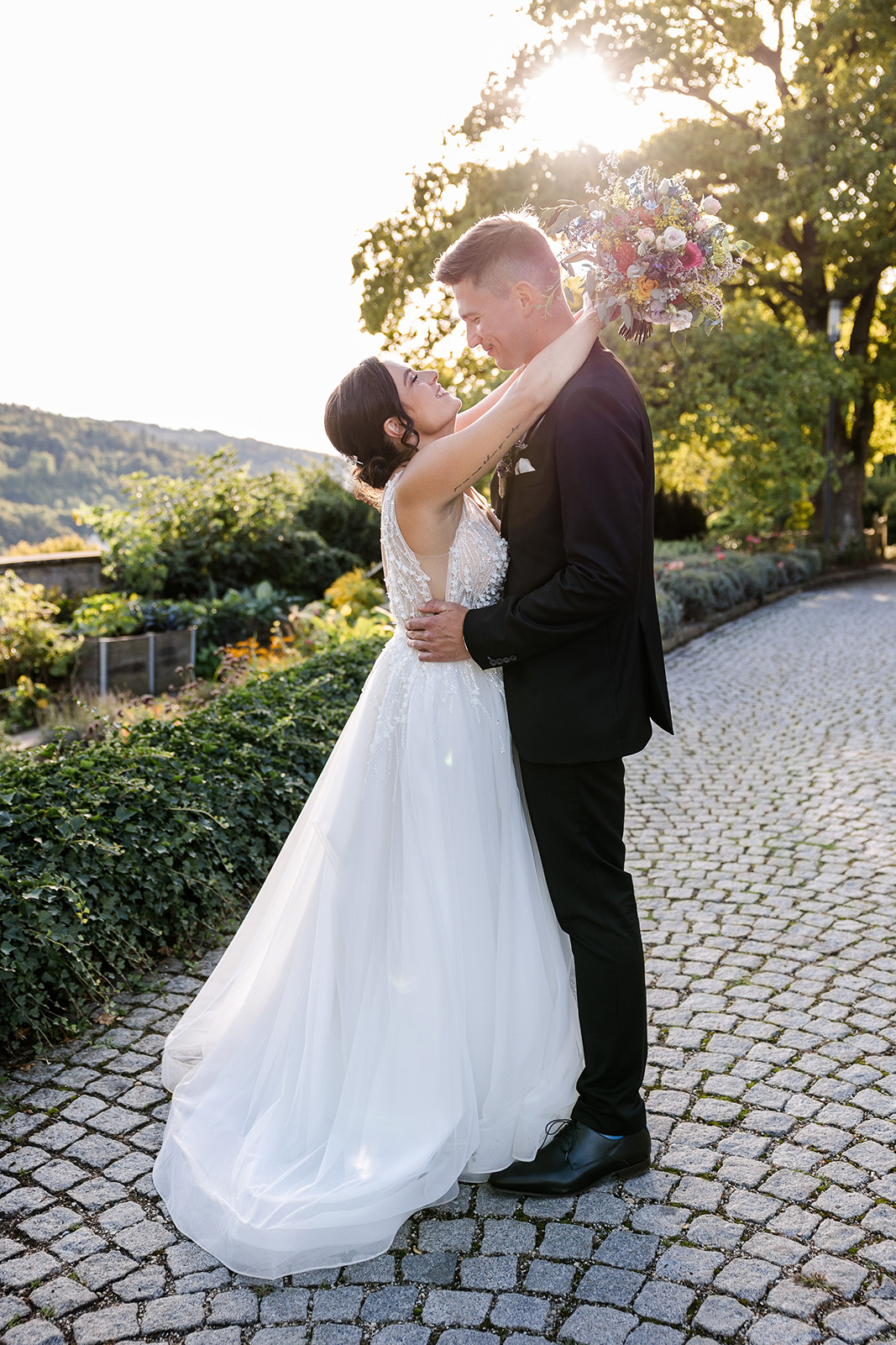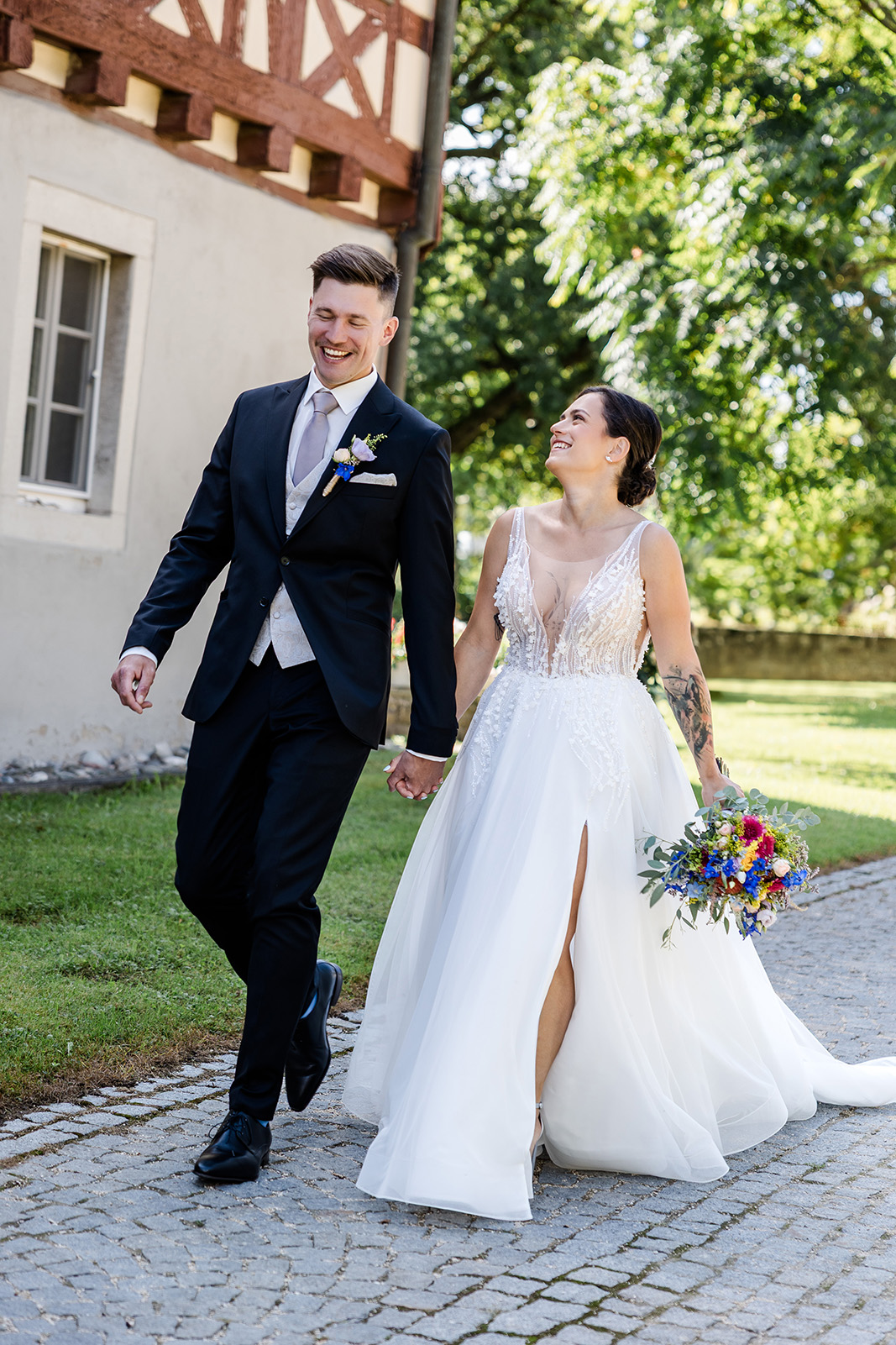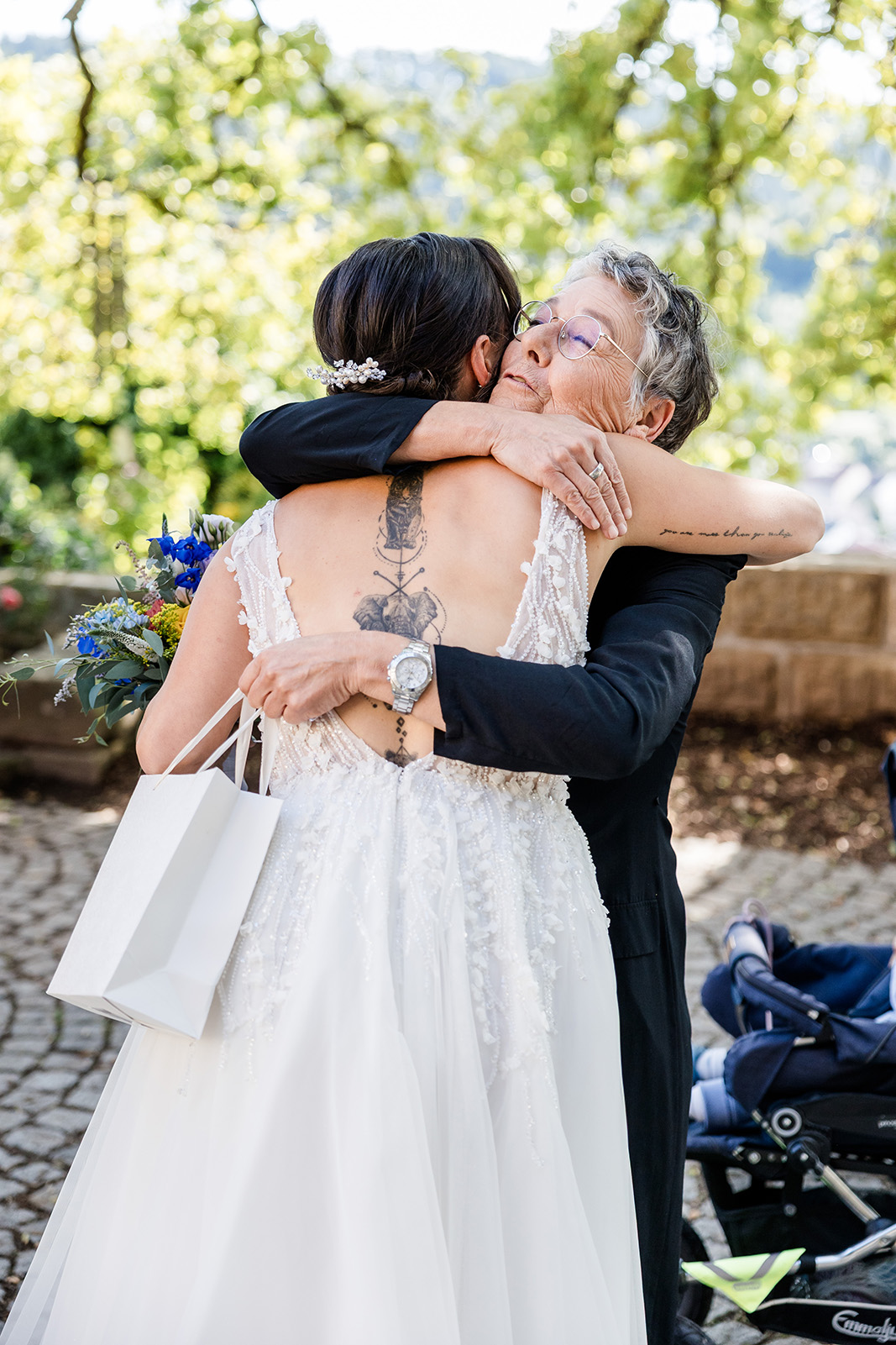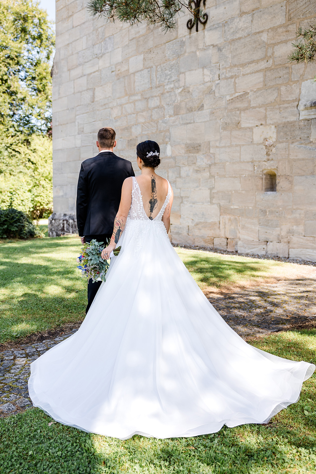 Leonie und Andre haben mich an ihrem besonderen Tag im Kloster Lorch von Anfang an mitgenommen – ein Ort voller Geschichte, Ruhe und einer besonderen Stimmung. Wir starteten mit ihrem First Look, dem ersten aufeinander Treffen des Tages. Es lag eine kleine Aufregung und ganz viel Vorfreude in der Luft.