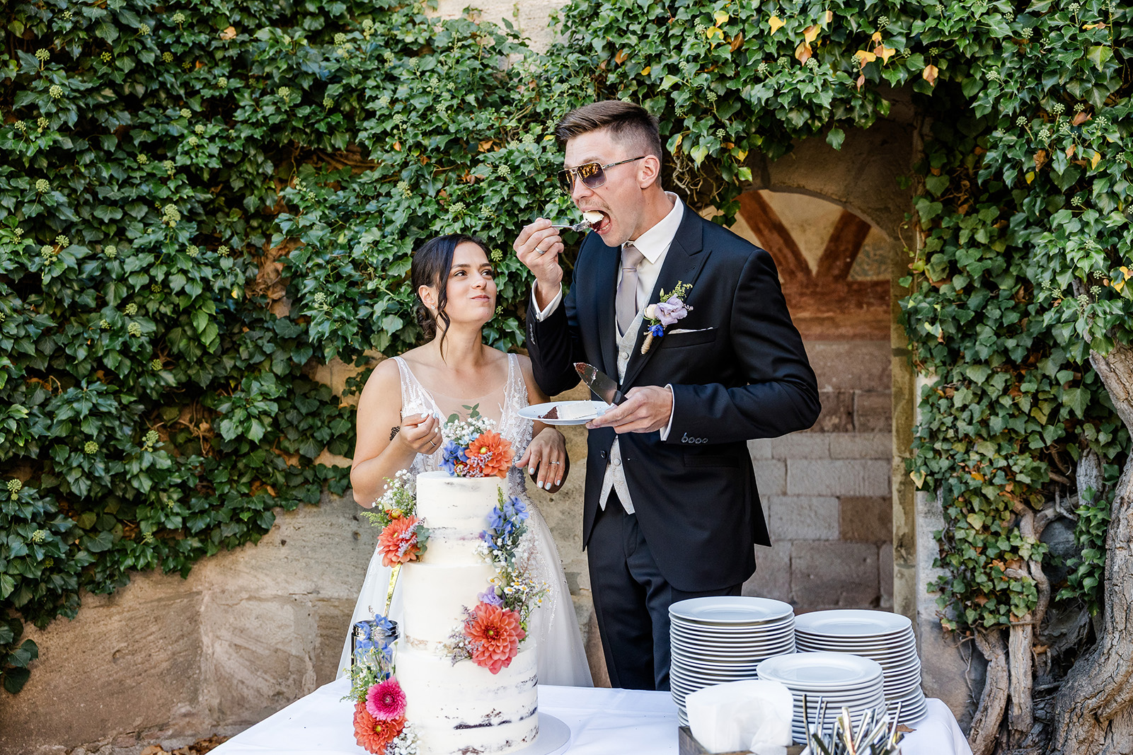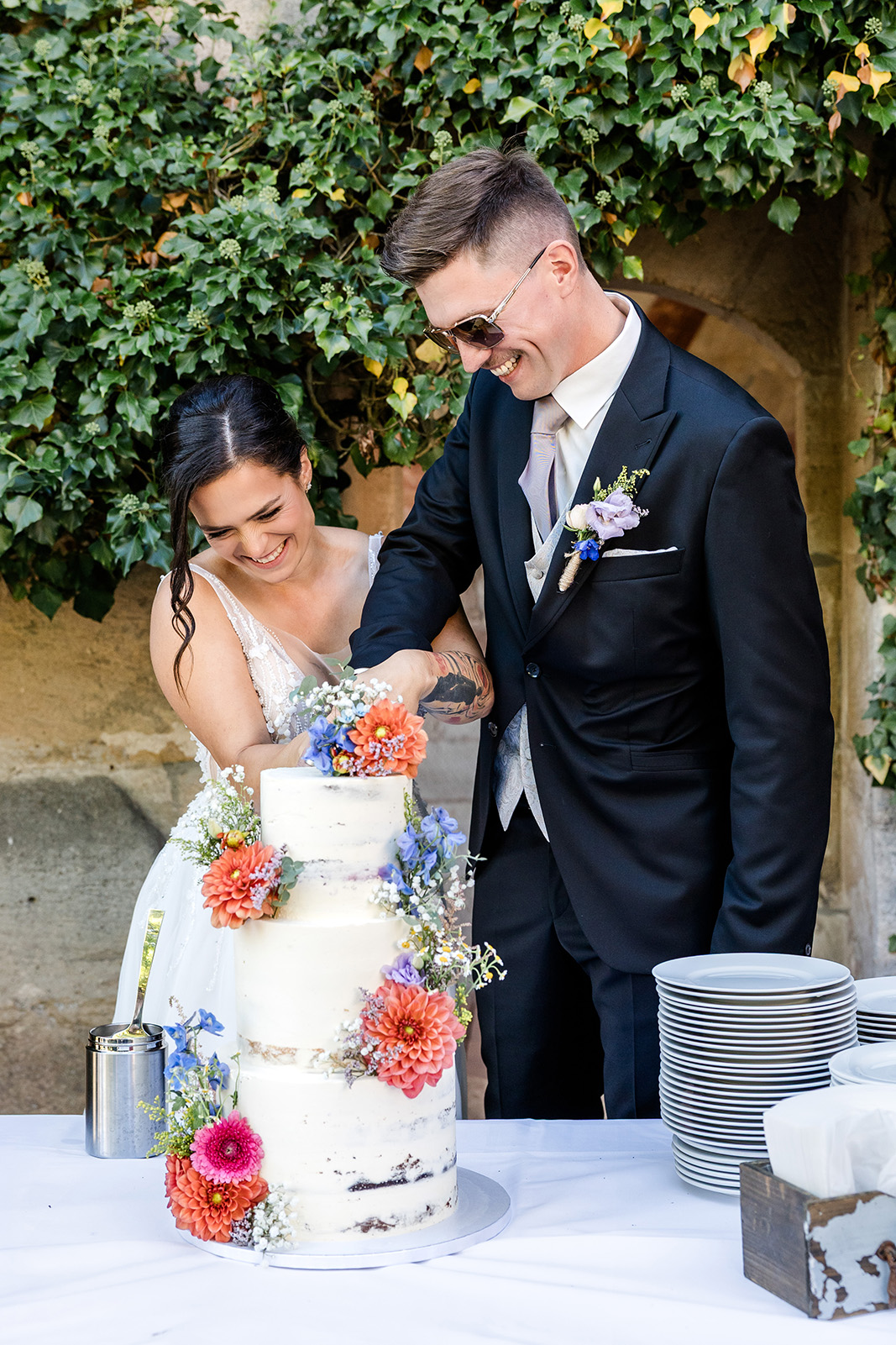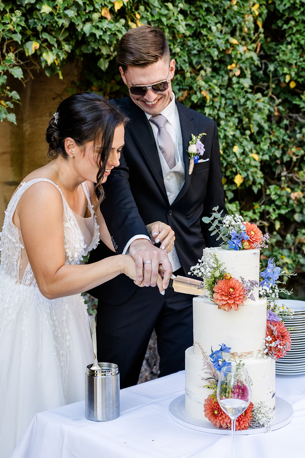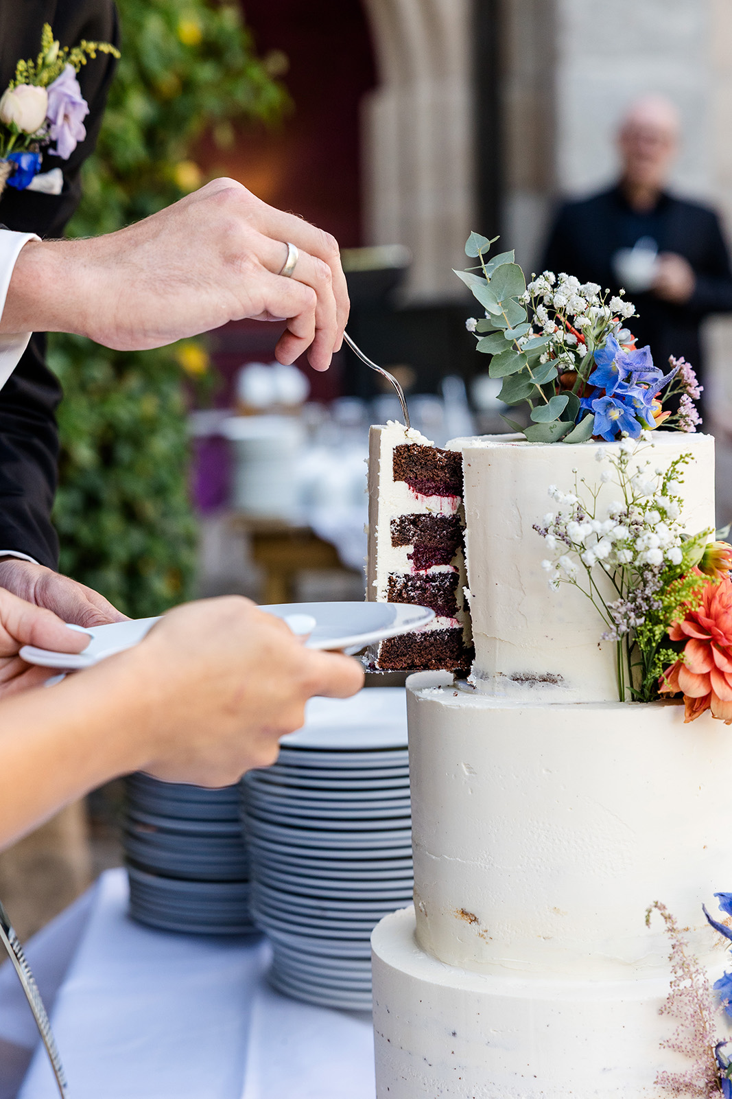 Nach dem Sektempfang folgten Gruppenbilder – natürlich auch ein paar „Speed-Gruppenbilder“, die immer für gute Laune sorgen. Am Nachmittag wurde die Hochzeitstorte angeschnitten und die Gäste durften anschließend eine Greifvogel-Show erleben, während ich ein paar besondere Details der Location und Dekoration einfangen konnte.