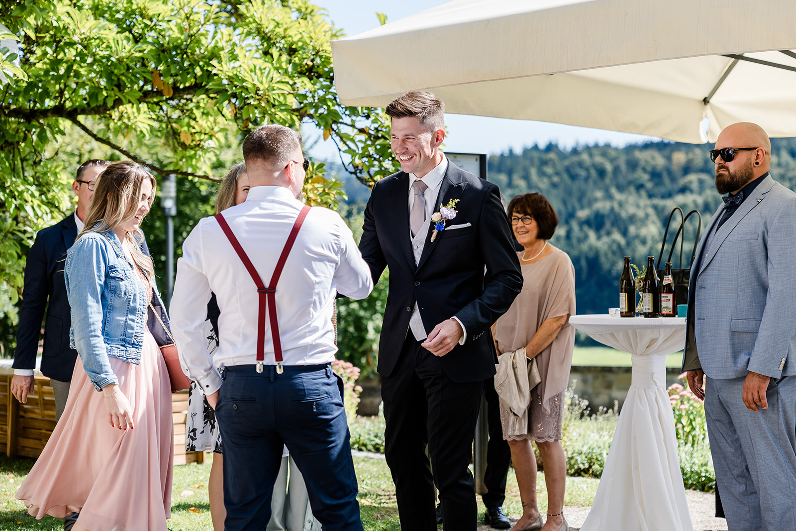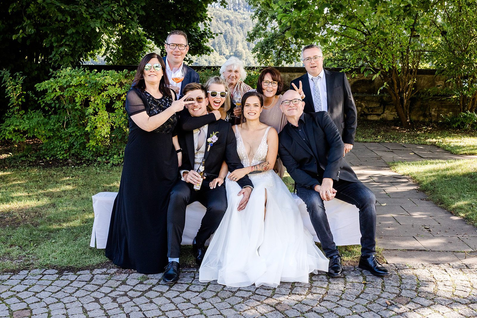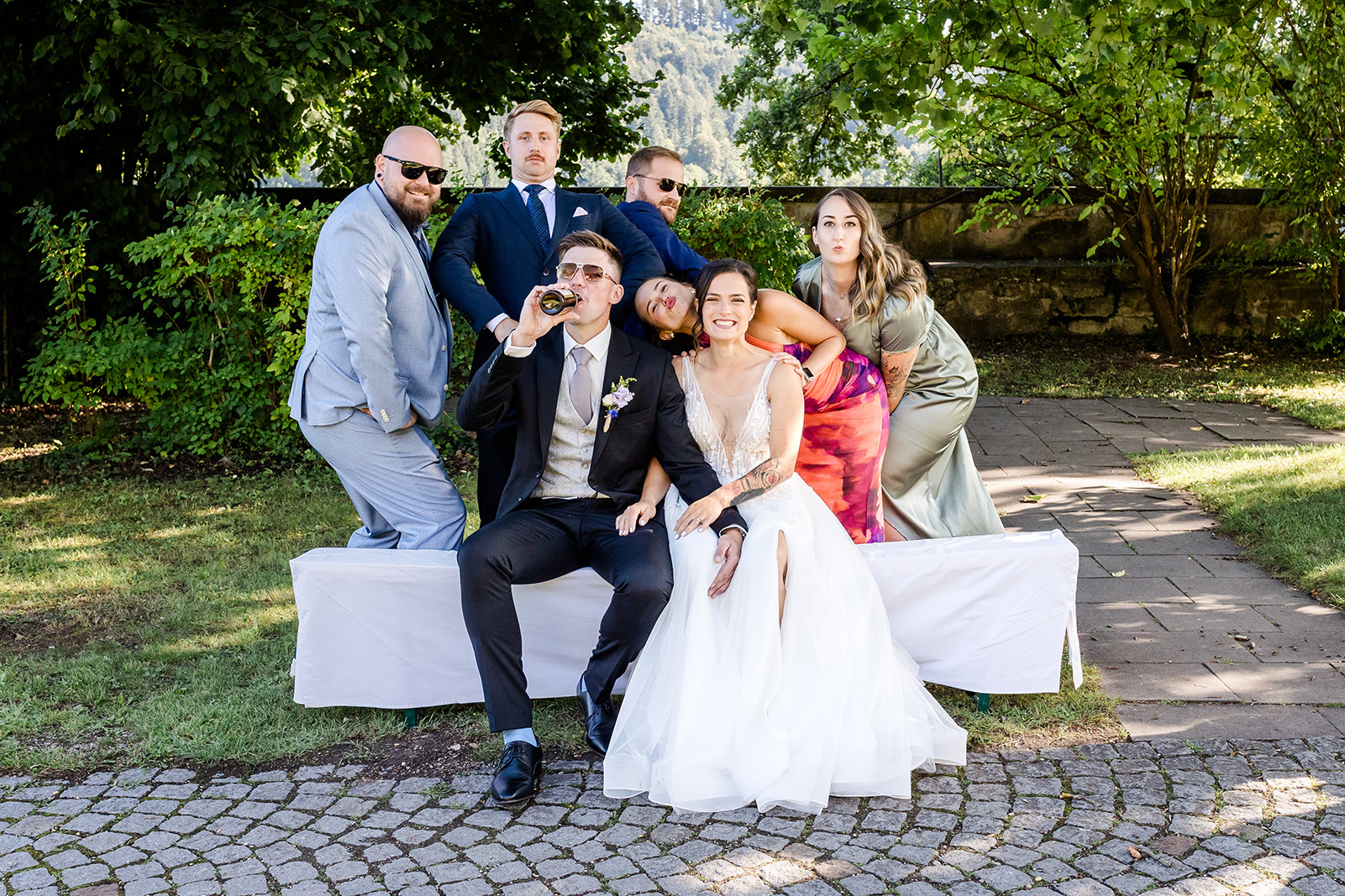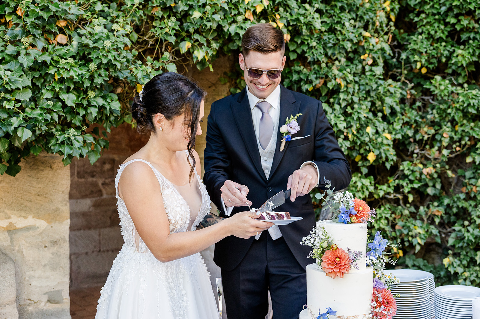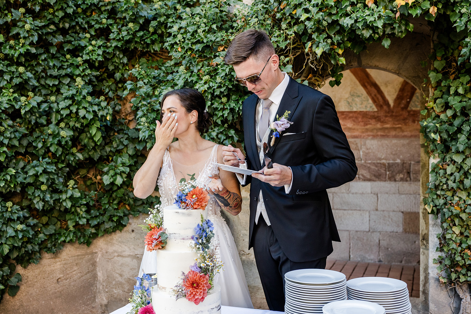 Nach dem Sektempfang folgten Gruppenbilder – natürlich auch ein paar „Speed-Gruppenbilder“, die immer für gute Laune sorgen. Am Nachmittag wurde die Hochzeitstorte angeschnitten und die Gäste durften anschließend eine Greifvogel-Show erleben, während ich ein paar besondere Details der Location und Dekoration einfangen konnte.