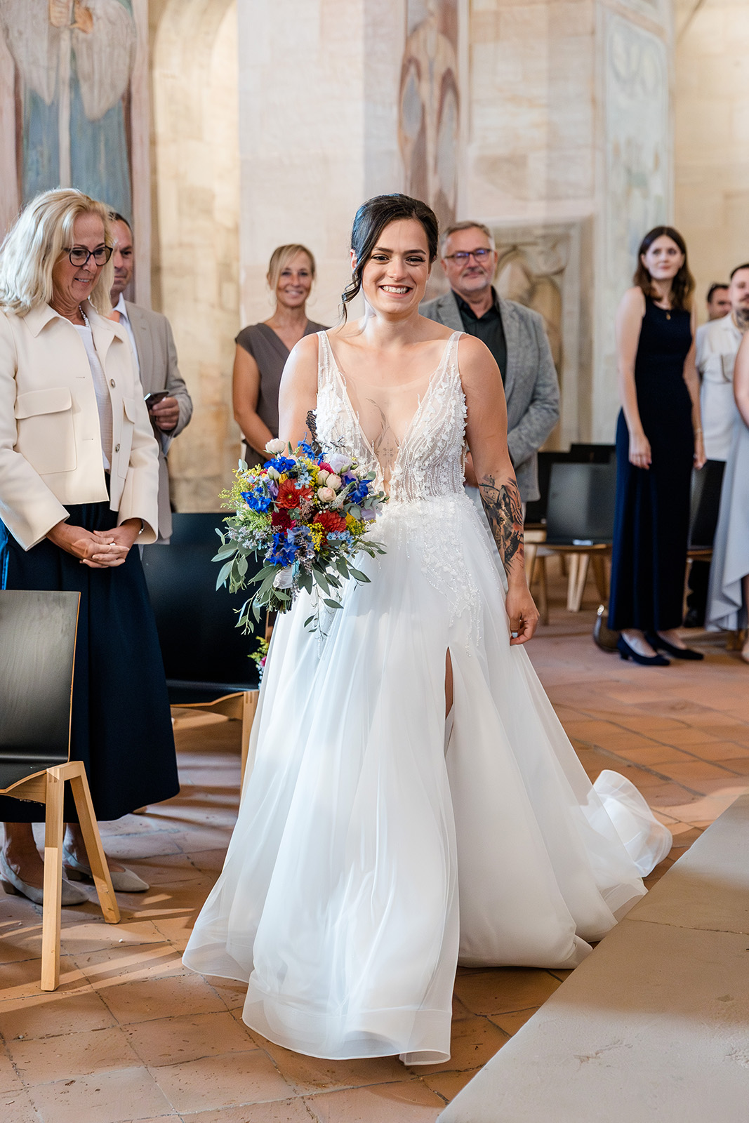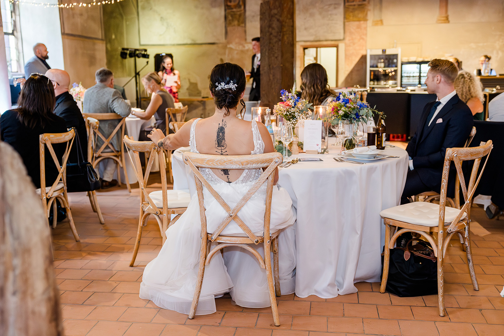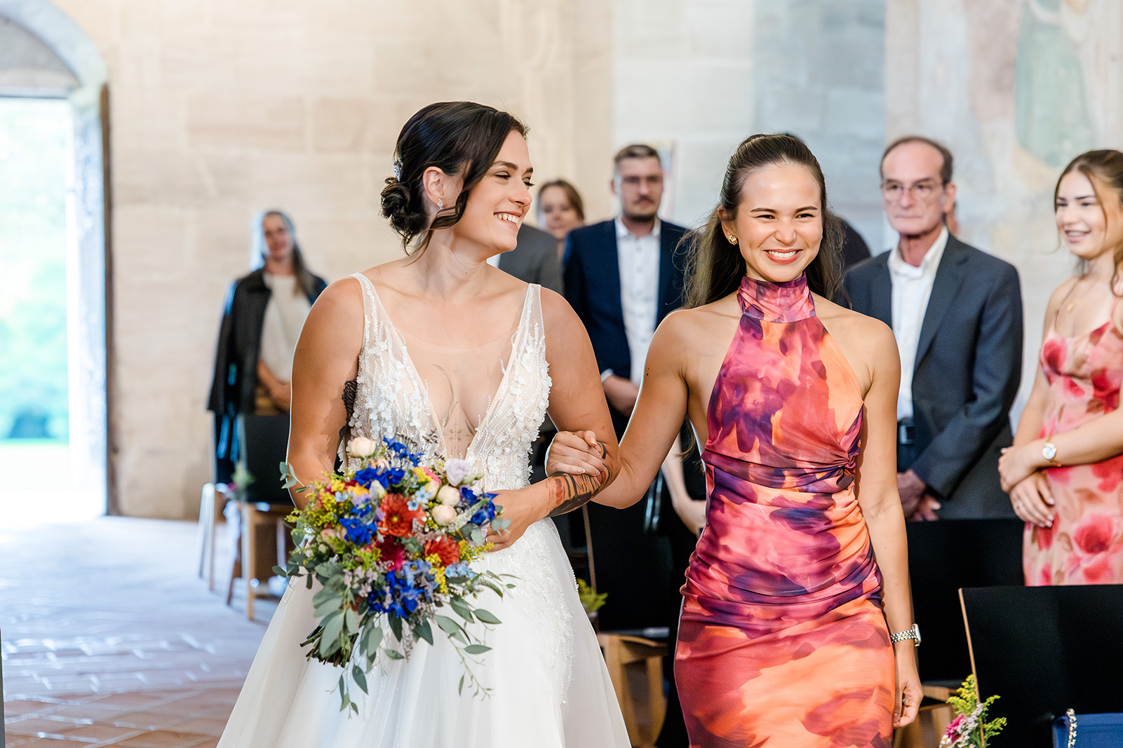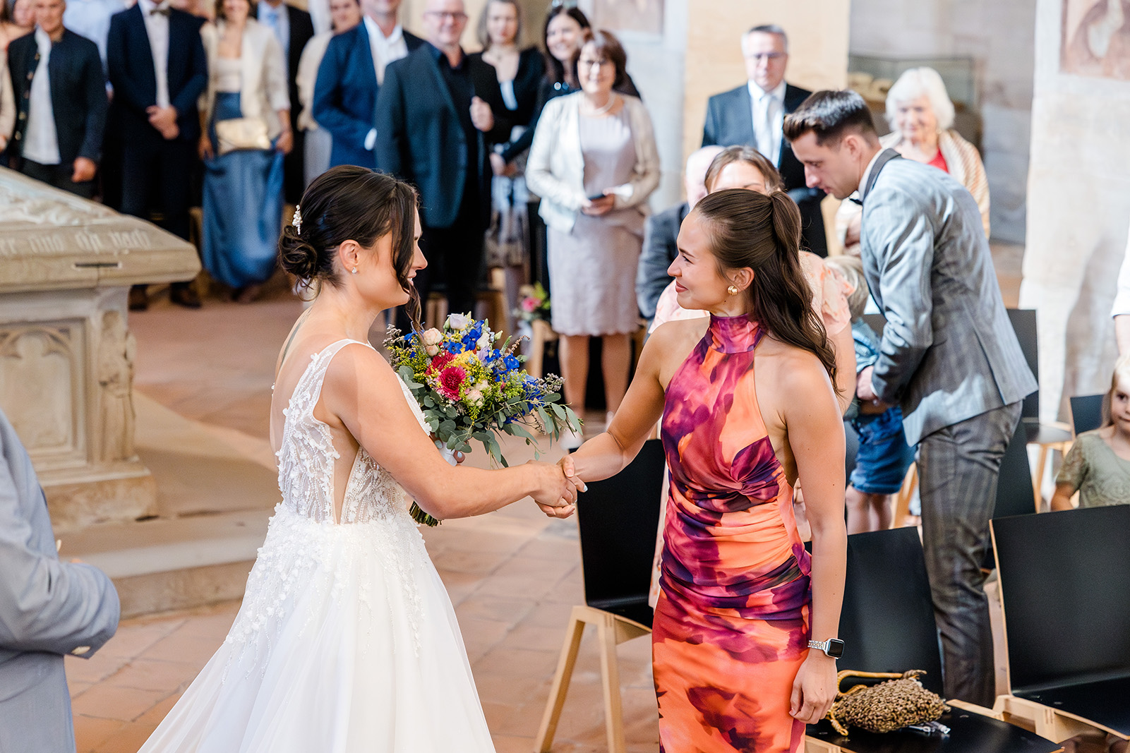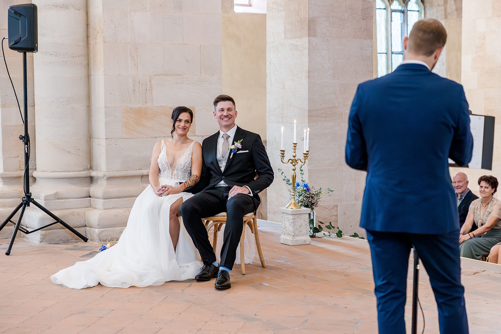 Die freie Trauung fand direkt in der Klosterkirche statt, liebevoll gestaltet und untermalt mit der Rede eines Freundes und musikalischer Unterstützung der Bräutigams-Schwester. Es war rundum eine wundervolle Atmosphäre, die noch lange nachwirkte.