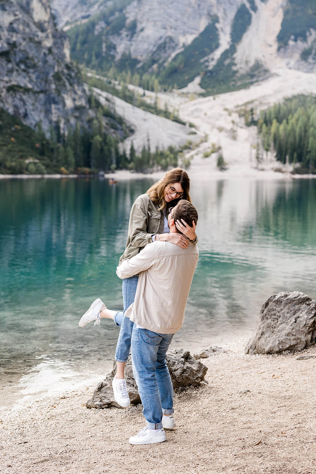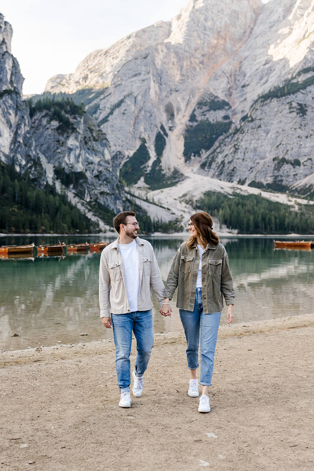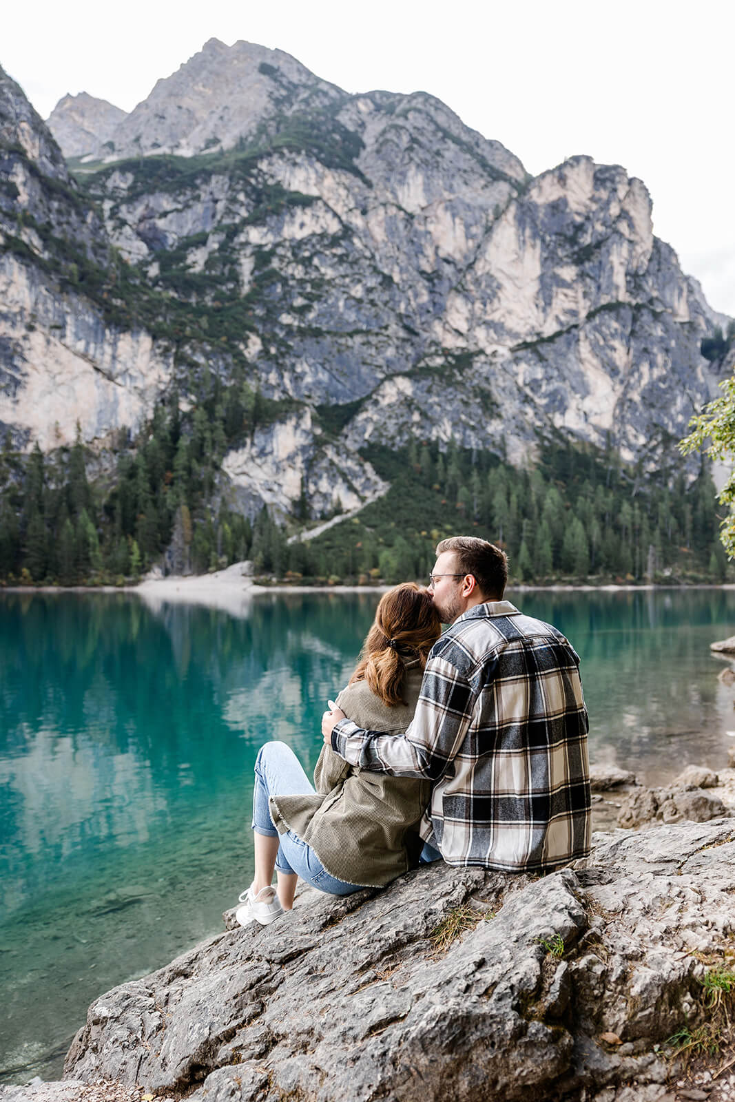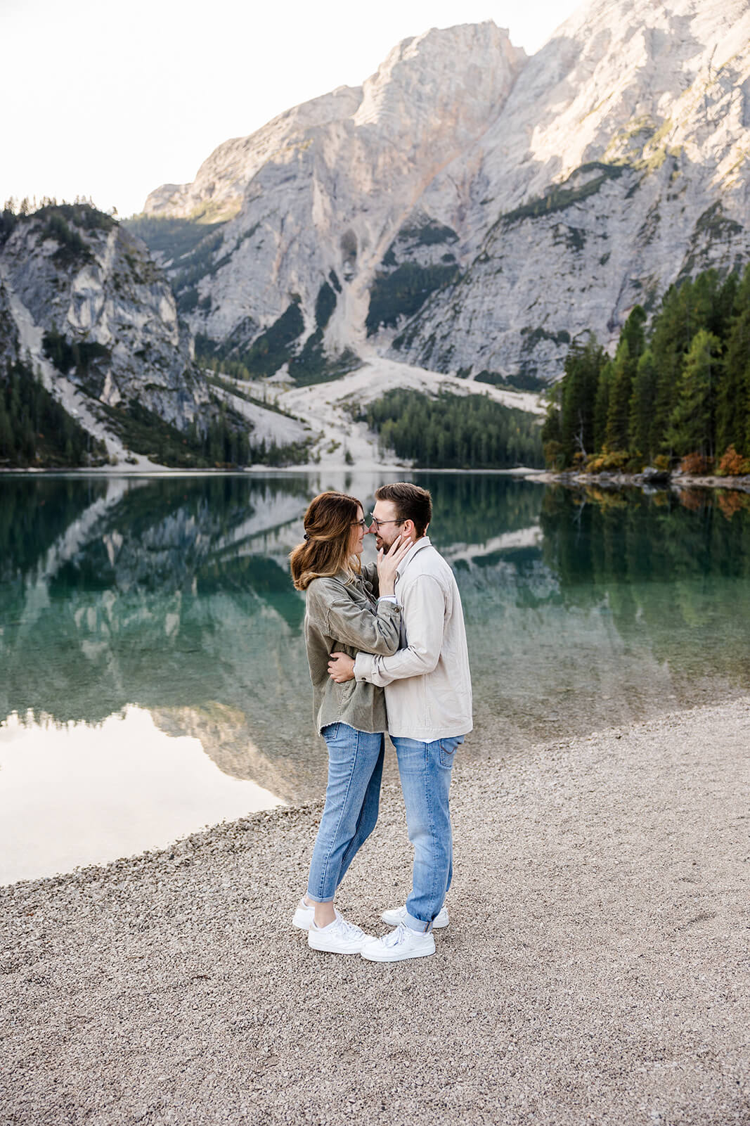 Mit Lara und Jonas entstand dieses Paarshooting recht spontan – und zwar am wunderschönen Pragser Wildsee in Südtirol, umgeben von beeindruckender Berg- und Seekulisse.