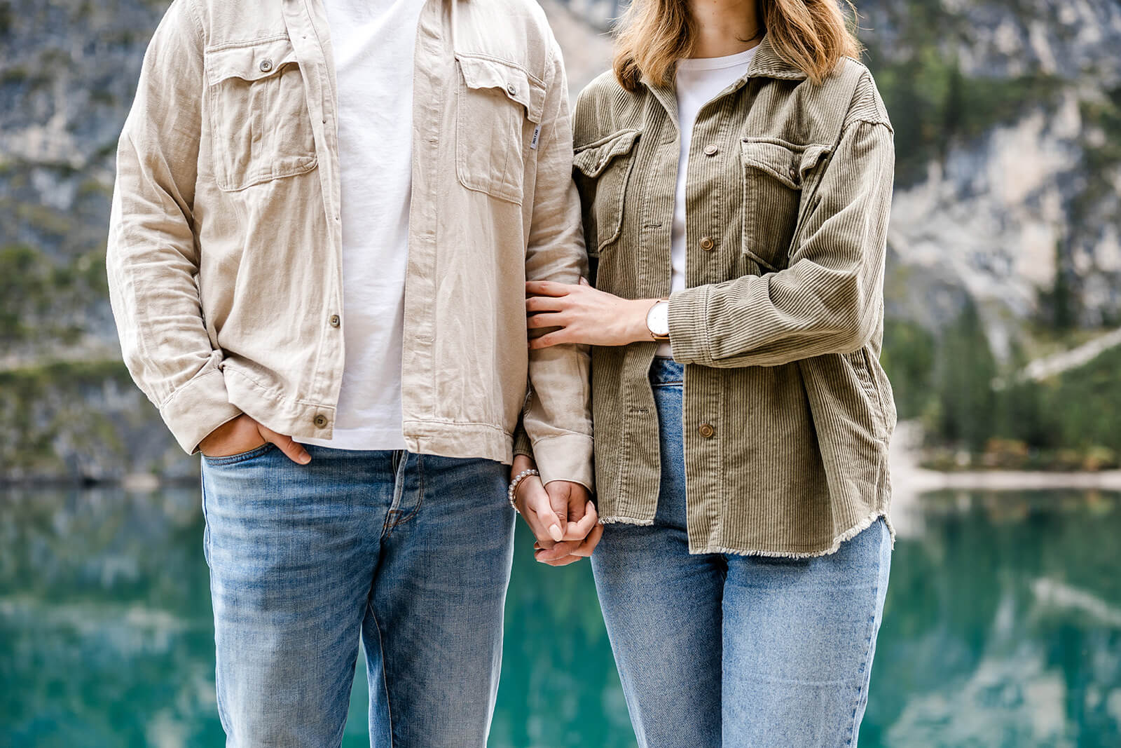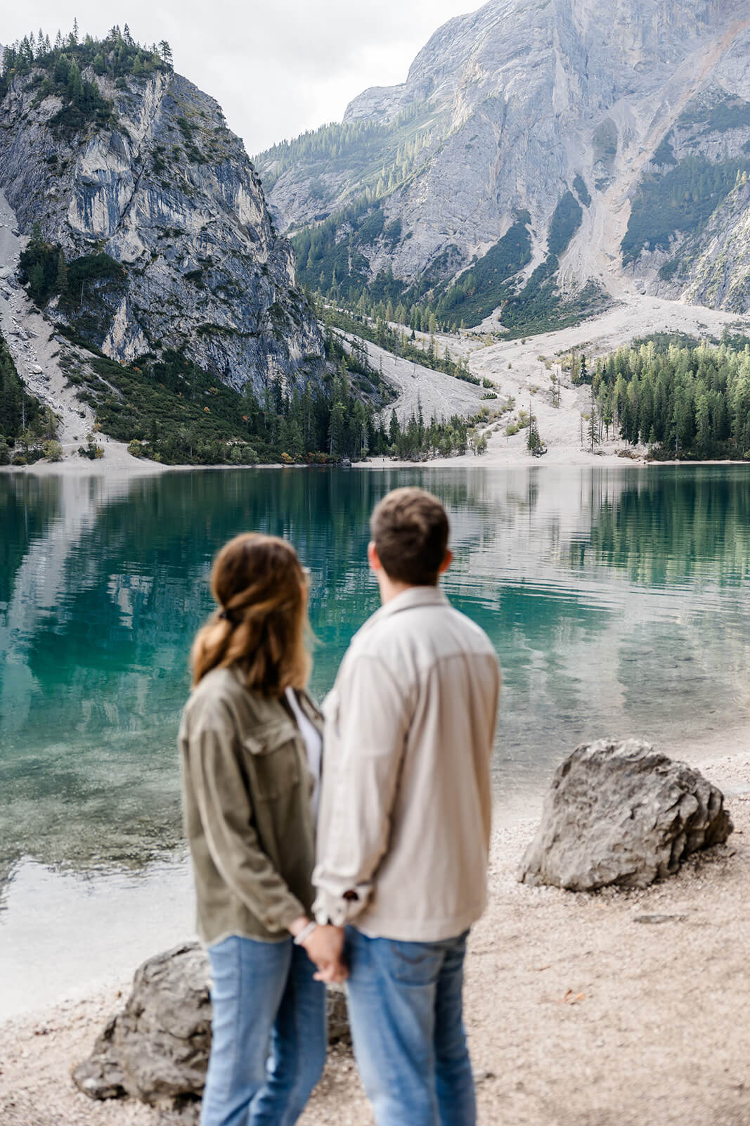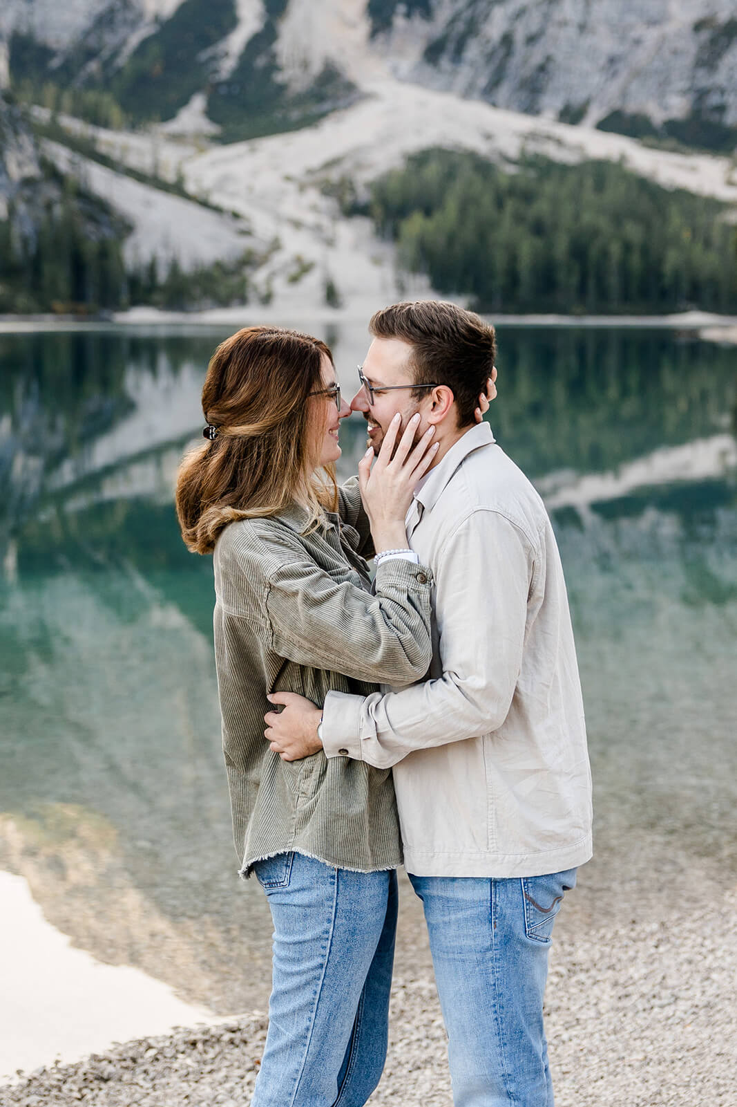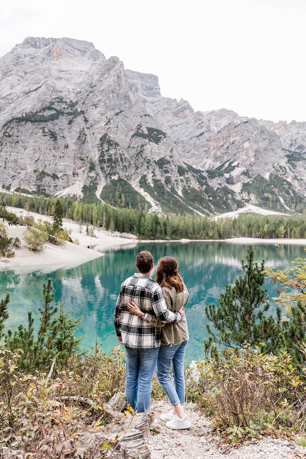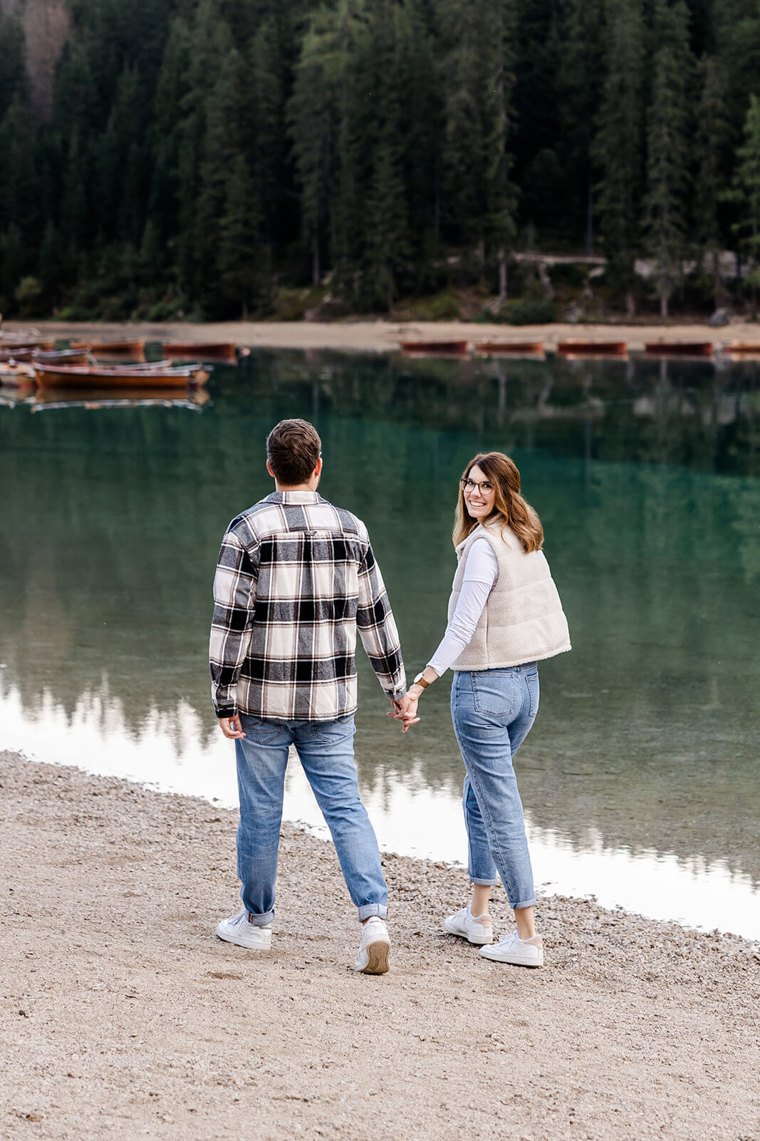 Mit Lara und Jonas entstand dieses Paarshooting recht spontan – und zwar am wunderschönen Pragser Wildsee in Südtirol, umgeben von beeindruckender Berg- und Seekulisse.
