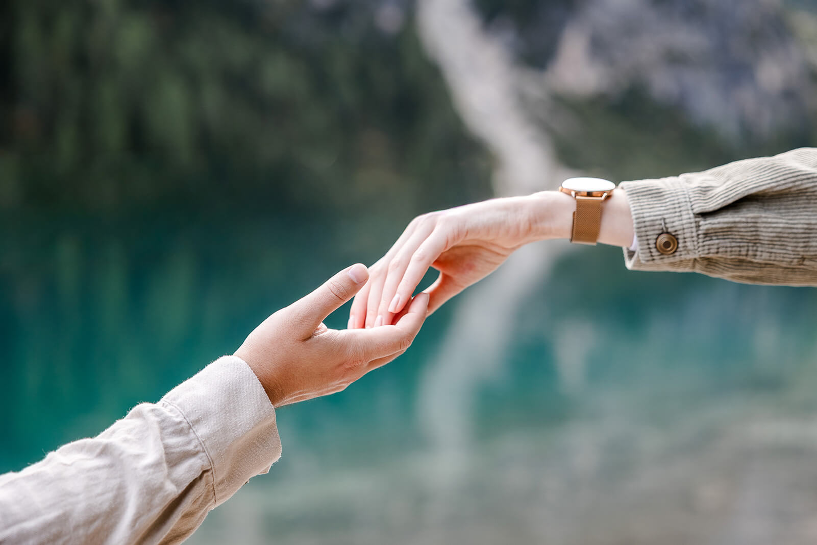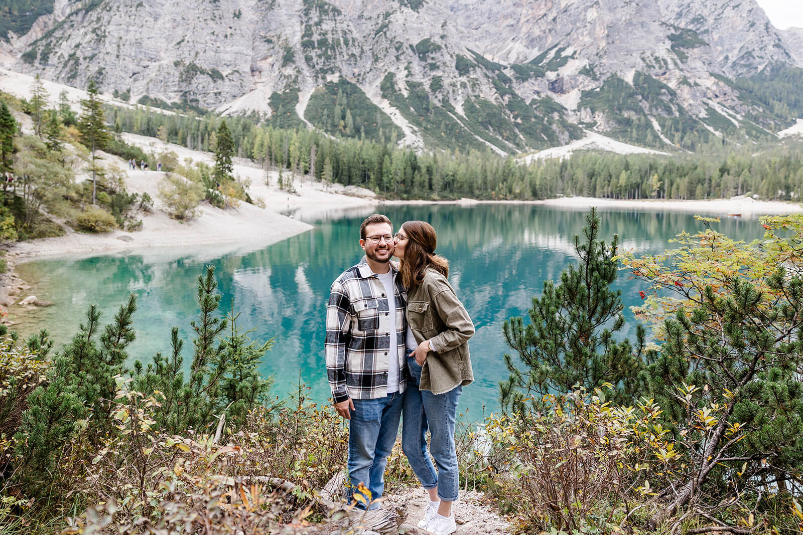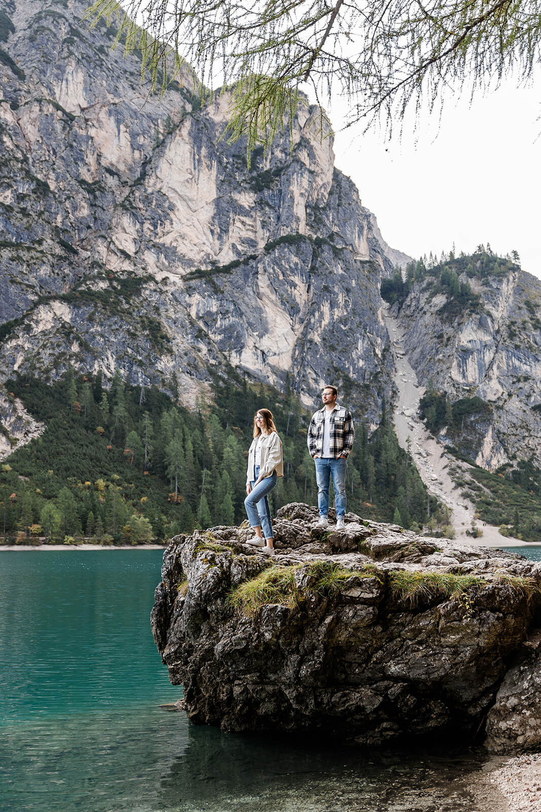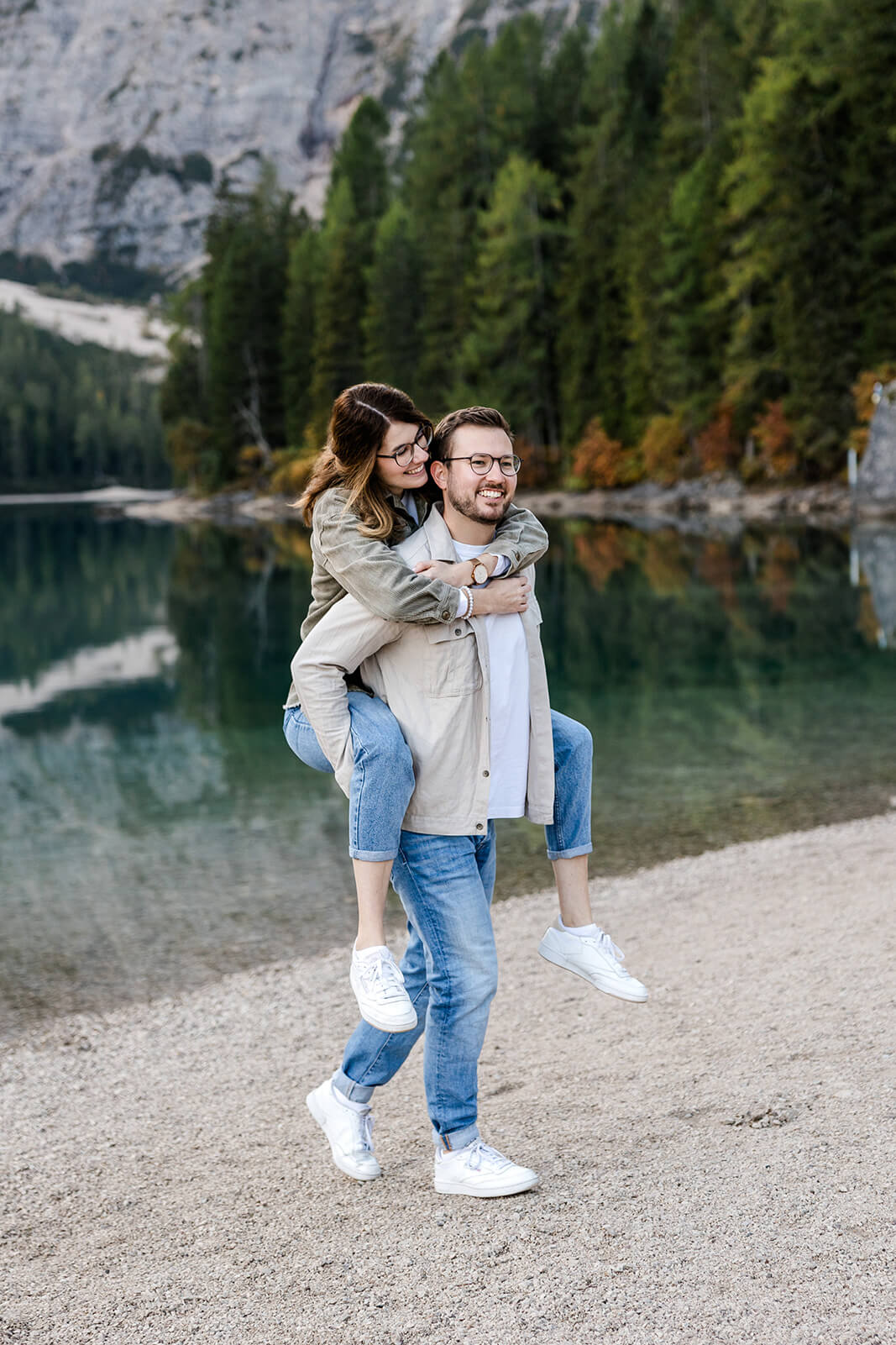 Mit Lara und Jonas entstand dieses Paarshooting recht spontan – und zwar am wunderschönen Pragser Wildsee in Südtirol, umgeben von beeindruckender Berg- und Seekulisse.