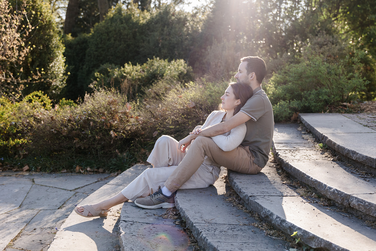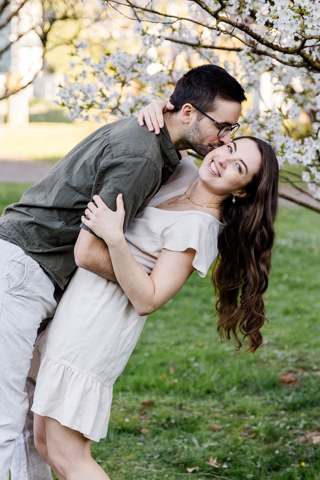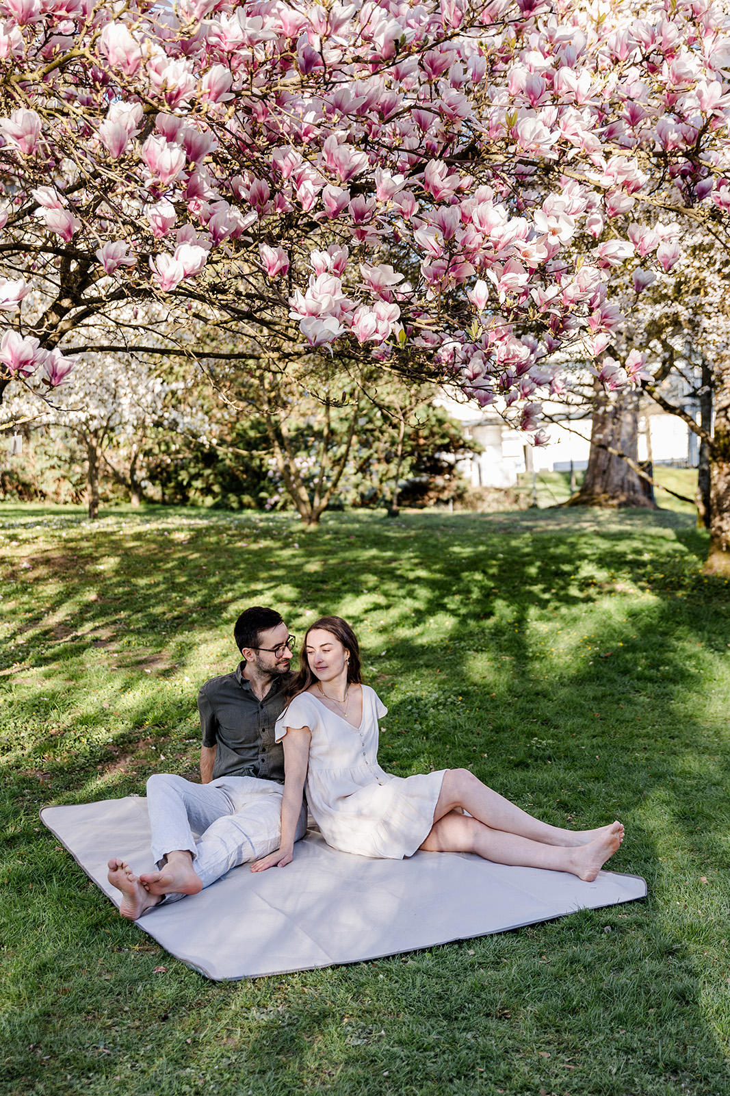 Im Frühling durfte ich die beiden im Hohenheimer Park in Stuttgart-Plieningen zu ihrem Verlobungsshooting treffen. Zwischen blühenden Magnolien und einem Teppich aus Gänseblümchen entstand eine ruhige, romantische Stimmung, die perfekt zu ihnen passte.