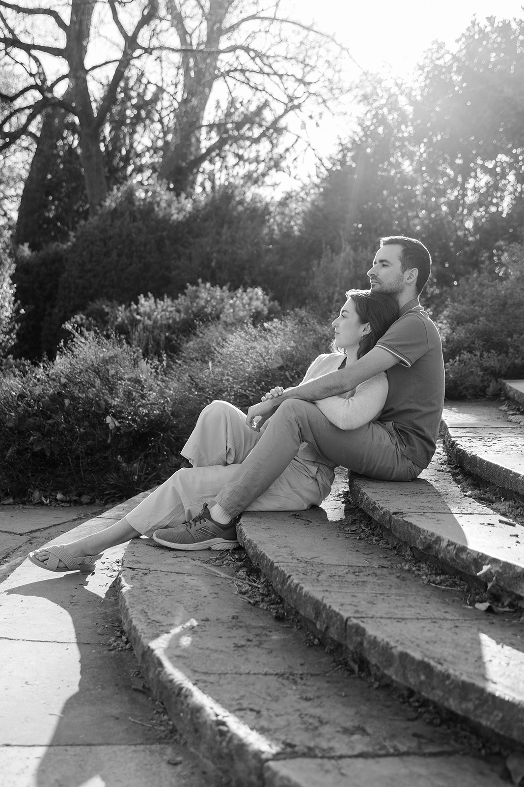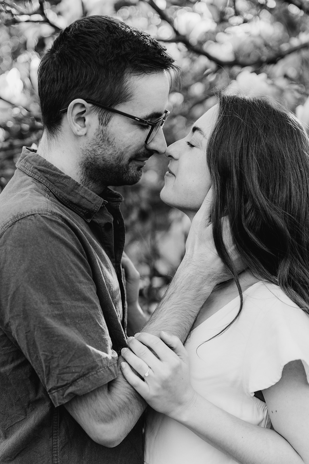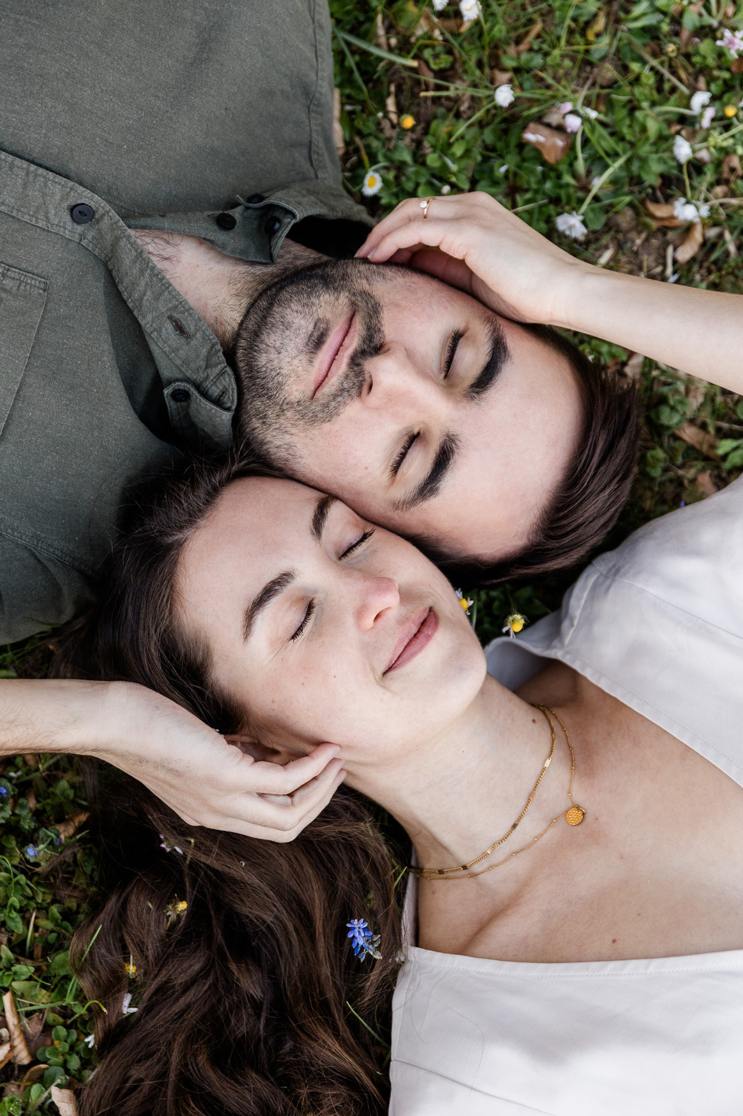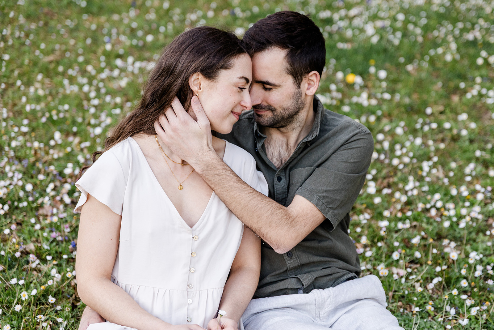 Im Frühling durfte ich die beiden im Hohenheimer Park in Stuttgart-Plieningen zu ihrem Verlobungsshooting treffen. Zwischen blühenden Magnolien und einem Teppich aus Gänseblümchen entstand eine ruhige, romantische Stimmung, die perfekt zu ihnen passte.