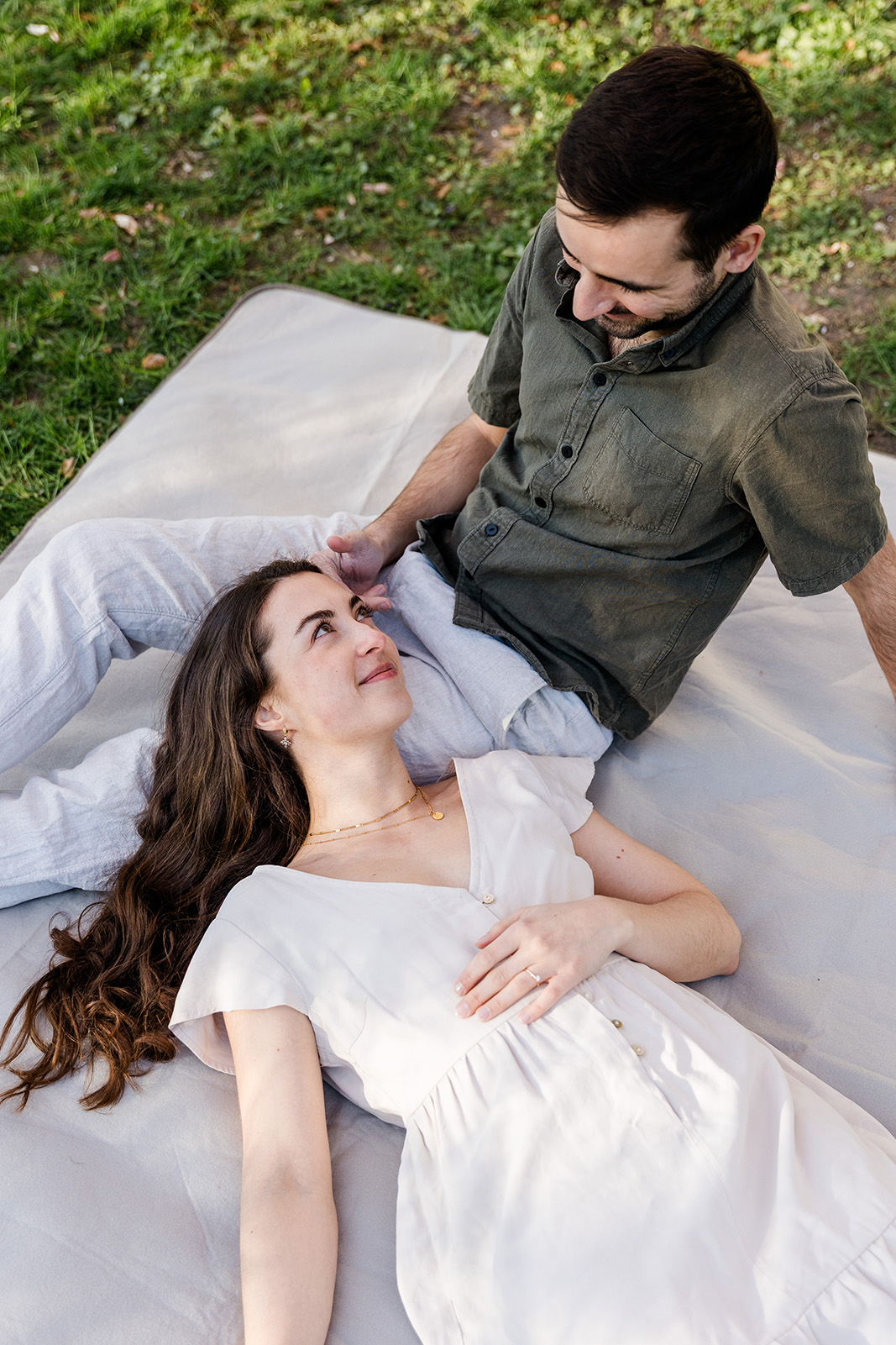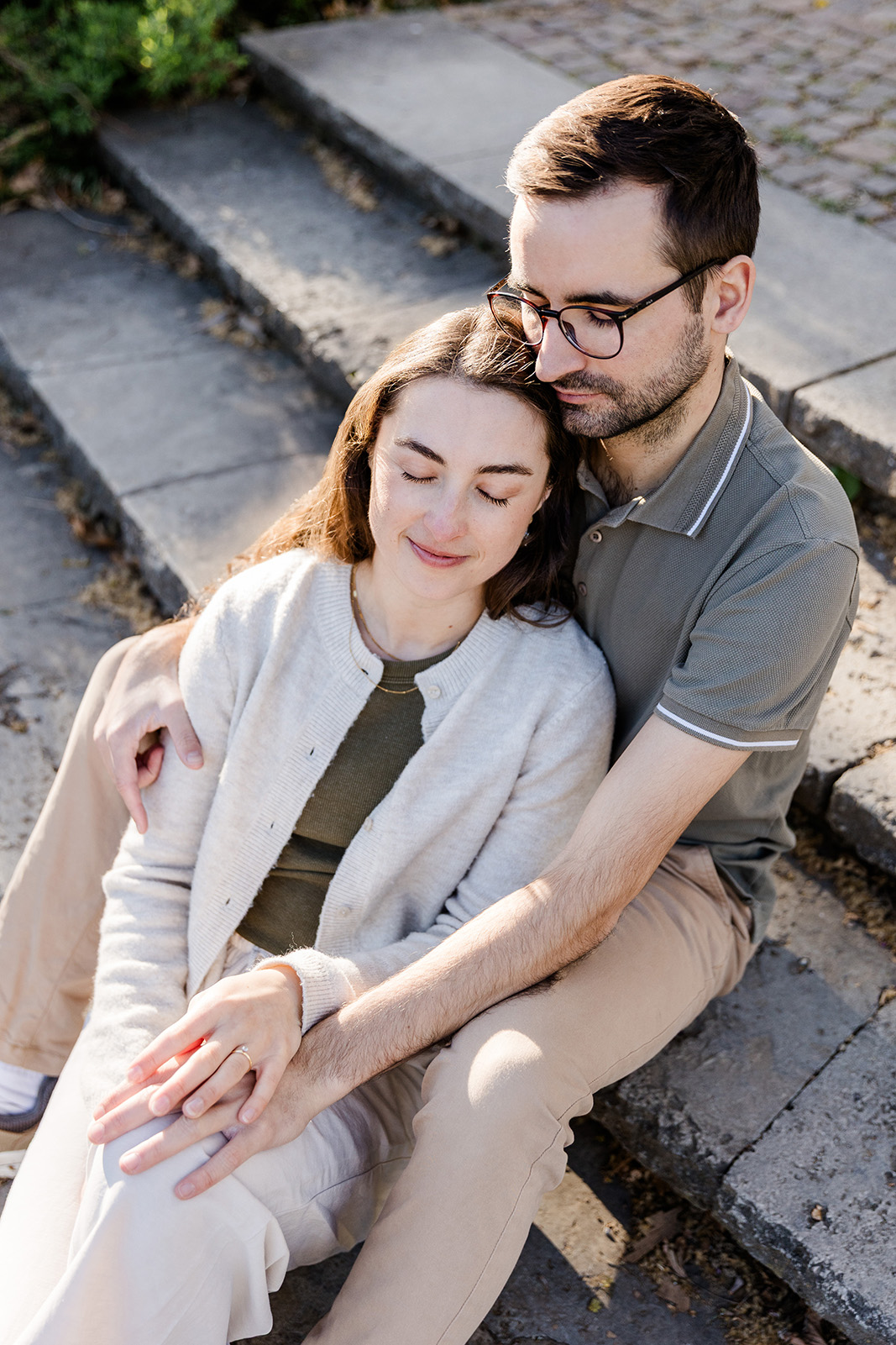 Sie nutzten diesen Moment ganz bewusst: für persönliche Bilder für ihre Hochzeitseinladungen und gleichzeitig, um schon vor der großen Hochzeit ein Gefühl für das Paarshooting zu entwickeln. So konnten sie Sicherheit gewinnen, Vertrauen aufbauen und einfach erleben, wie leicht und entspannt gemeinsame Bilder entstehen dürfen.